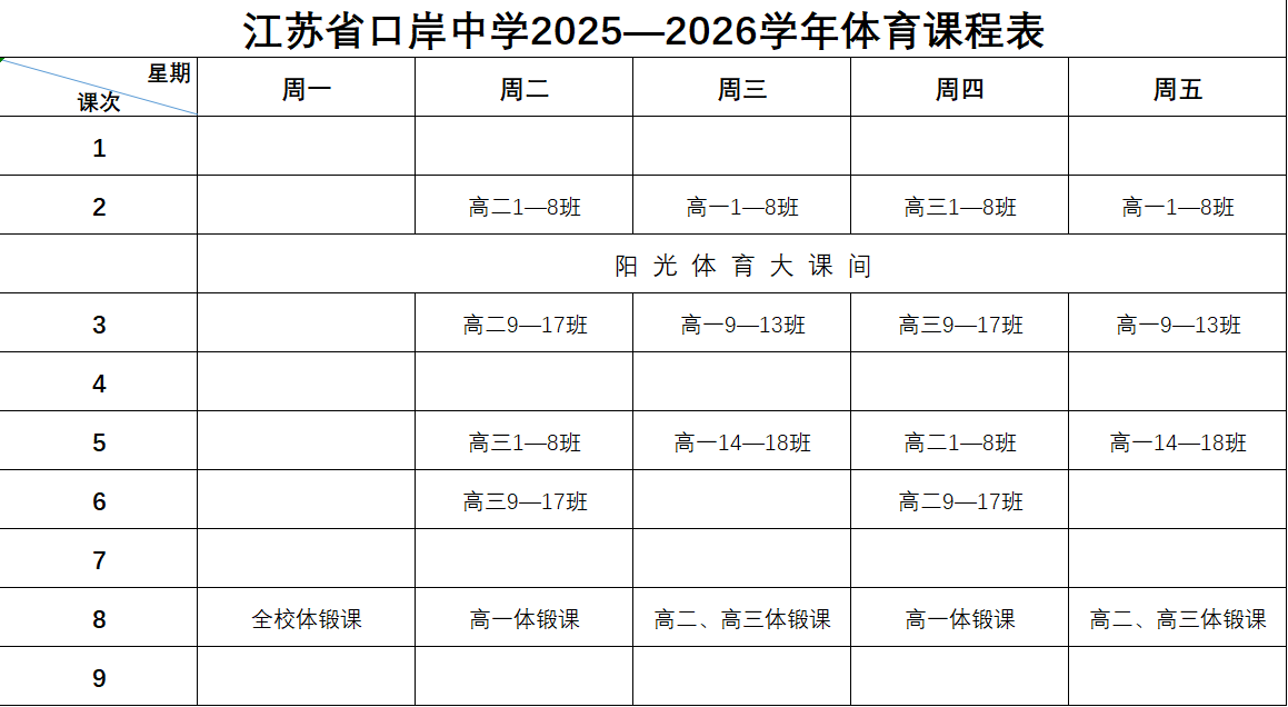 江苏省口岸中学2025—2026学年体育课程表